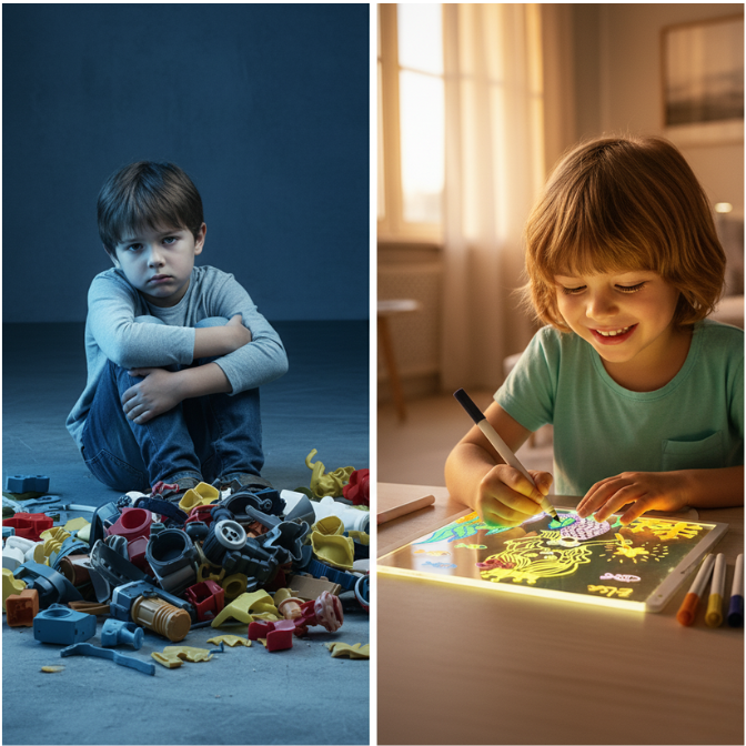 Observe a su hijo participar en creaciones imaginativas durante las horas, mientras reduce el tiempo que pasa frente a la pantalla.